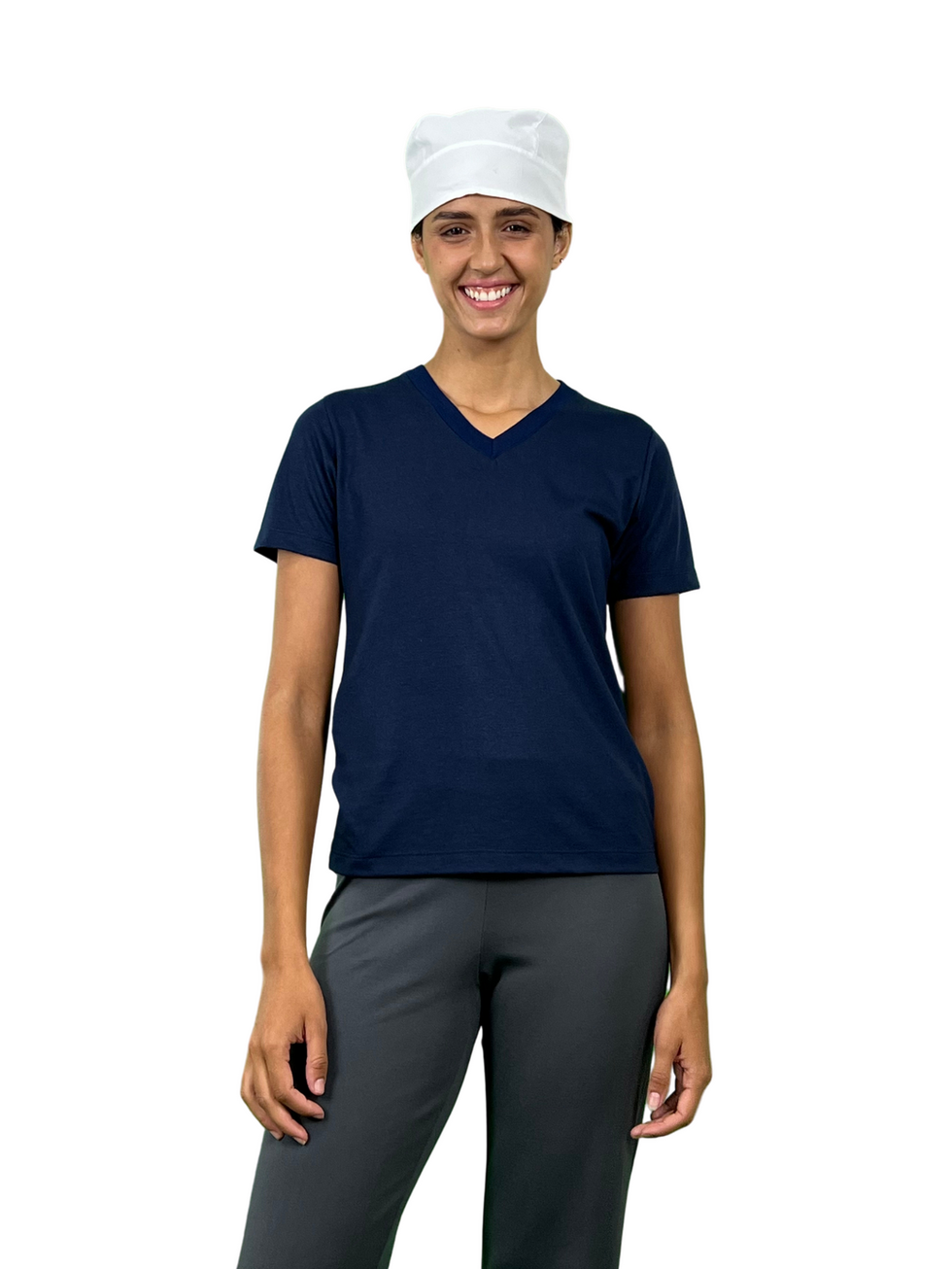 Touca unissex/ com recorte laterais/ com tiras para amarrar atrás.